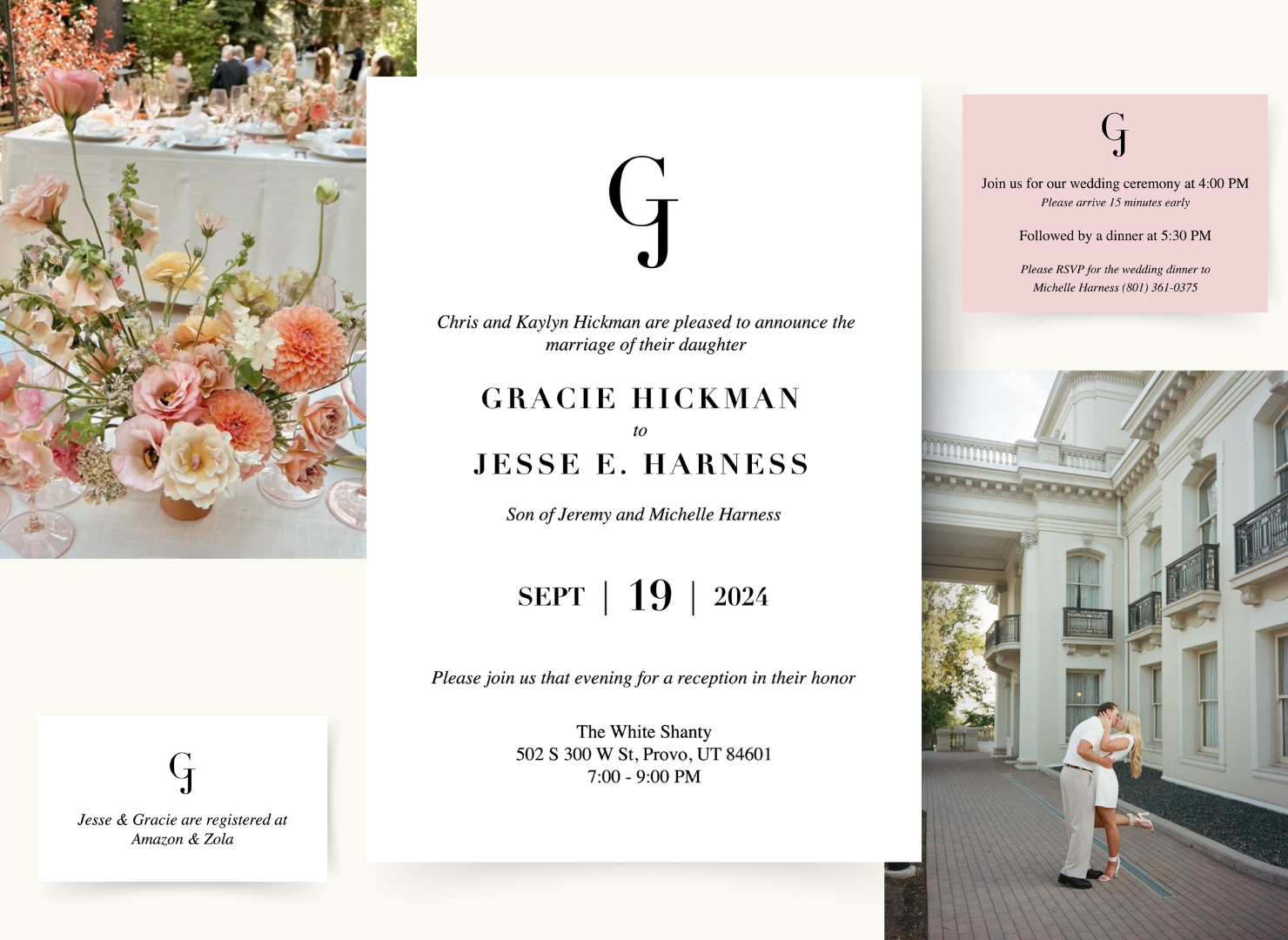 Full custom wedding invitation design for a private client, including the complete print suite and coordinated day-of materials.